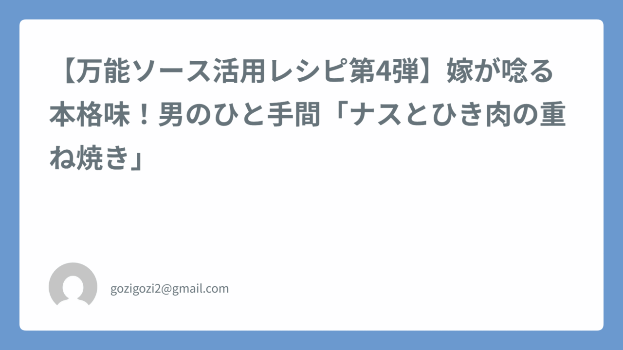 いつものソースを**「ごちそう」**に変える、ナスとひき肉の重ね焼き(ラザニア風)です。オーブンを使わずトースターでも作れるのに、手間をかけたような本格的な味わいと、何より見た目がおしゃれで、嫁もきっと驚いてくれる一皿です!ぜひ、作ってみて下さい。